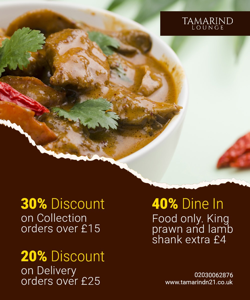 Discover TAMARIND LOUNGE located in N21 2RT, Winchmore Hill’s top-rated Indian restaurant offering authentic cuisine, online ordering, and easy table bookings. Dine in or collect—just minutes from Palmers Green & Enfield!